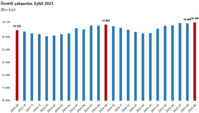Türkiye İstatistik Kurumu (TÜİK) ‘Ücretli Çalışan İstatistikleri, Eylül 2025‘ verilerini açıkladı.